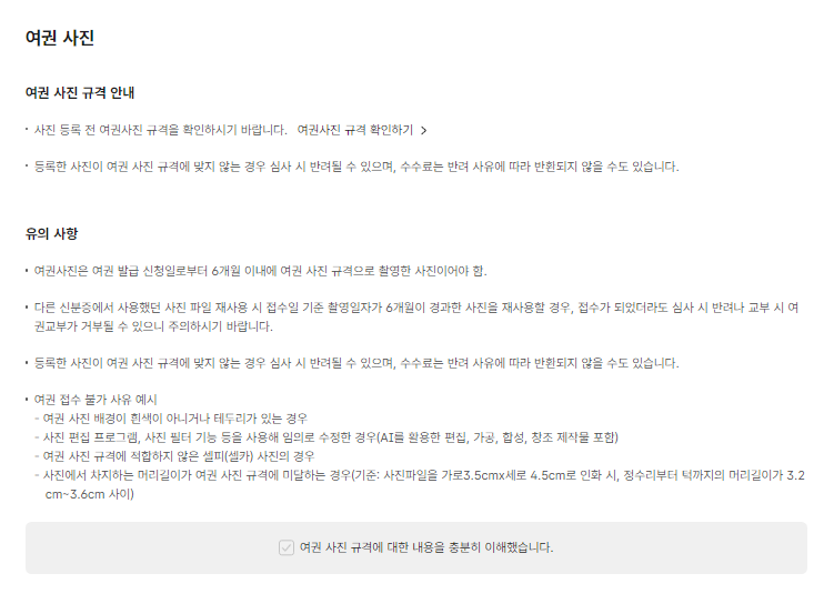 여권 규격에 적합하지 않은 셀카사진의 경우