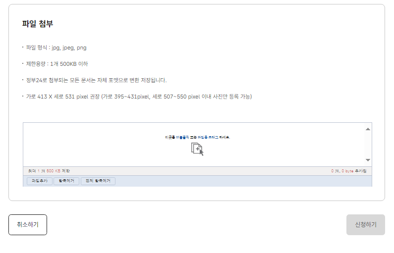 등록한 사진이 규격에 맞지 않는 경우 심사시 반려될 수 있고, 수수료는 반환되지 않을 수 있습니다.