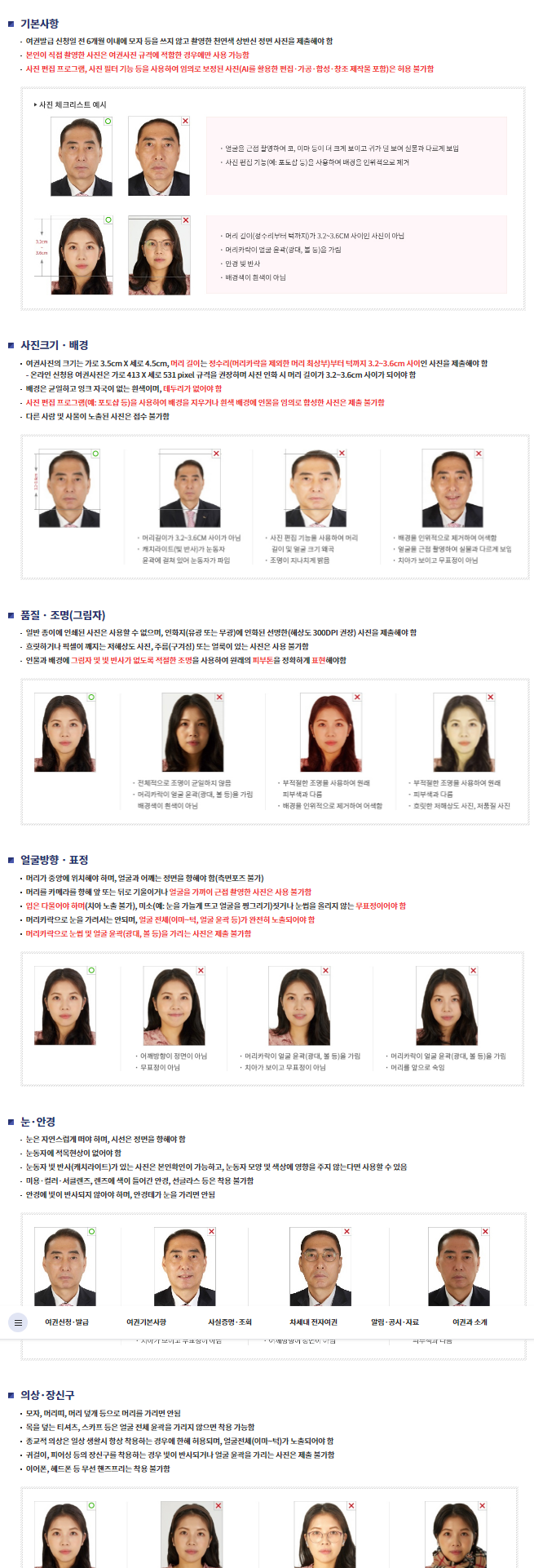 여권사진 규격안내