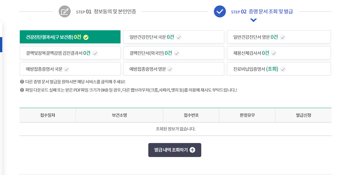 보건소에서 검사해서 아무 이상이 없었을 때 인터넷 발급이 가능합니다.