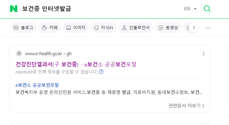 본인이 가까운 보건소 나 보건증 가능 검사 병원을 인터넷에서 찾습니다.