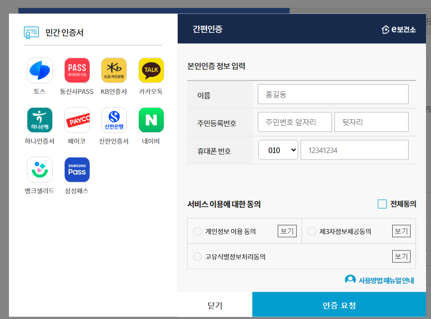 신분증이 없다면 여권이나, 주민등록 등본을 이용해도 좋습니다.